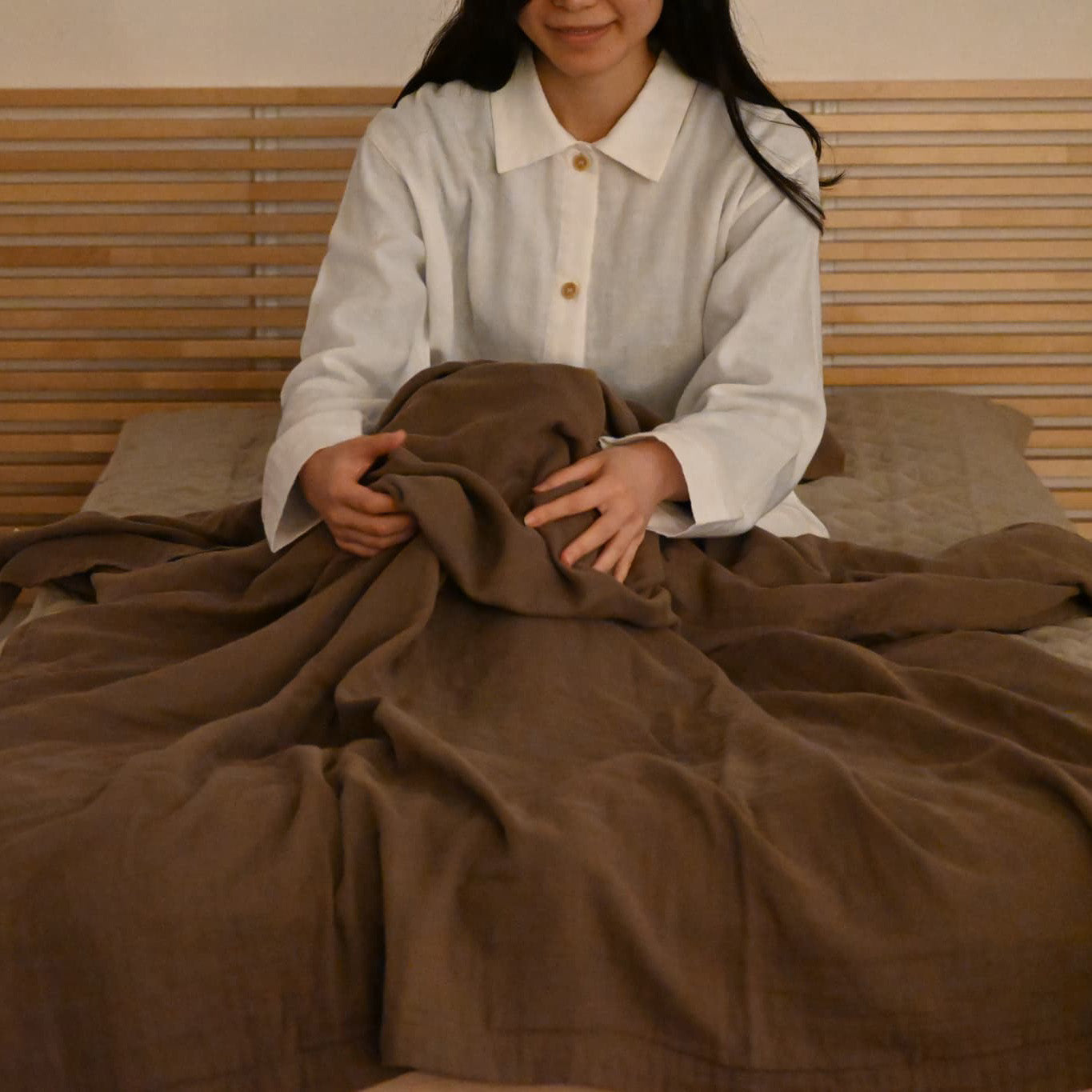 寒い日はメインの掛け布団の上にこちらのガーゼケットを一枚足してお使い頂くのもおすすめです。